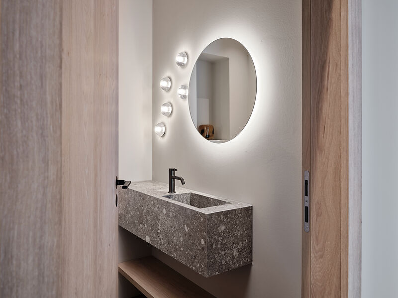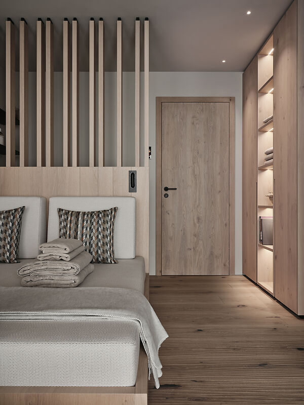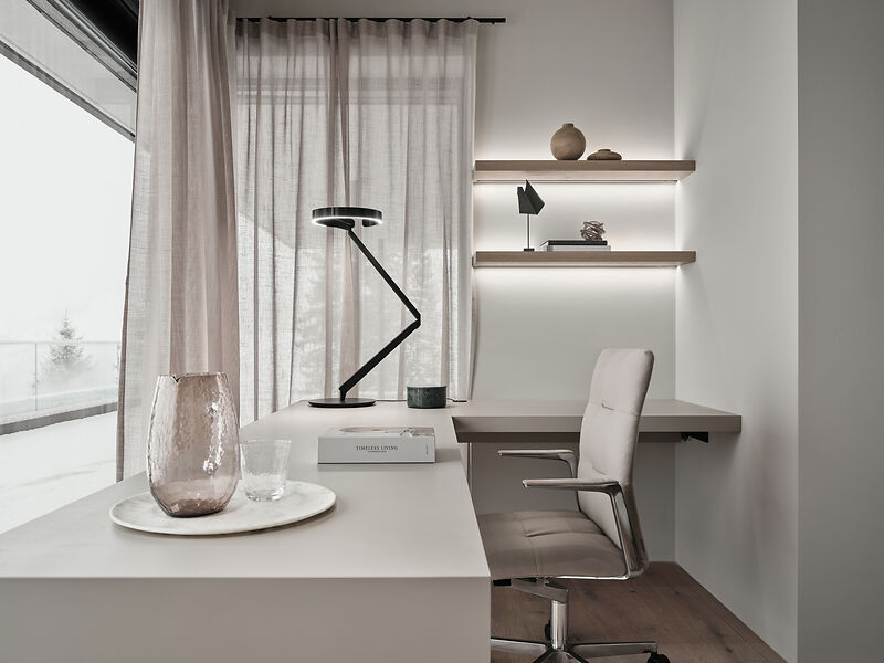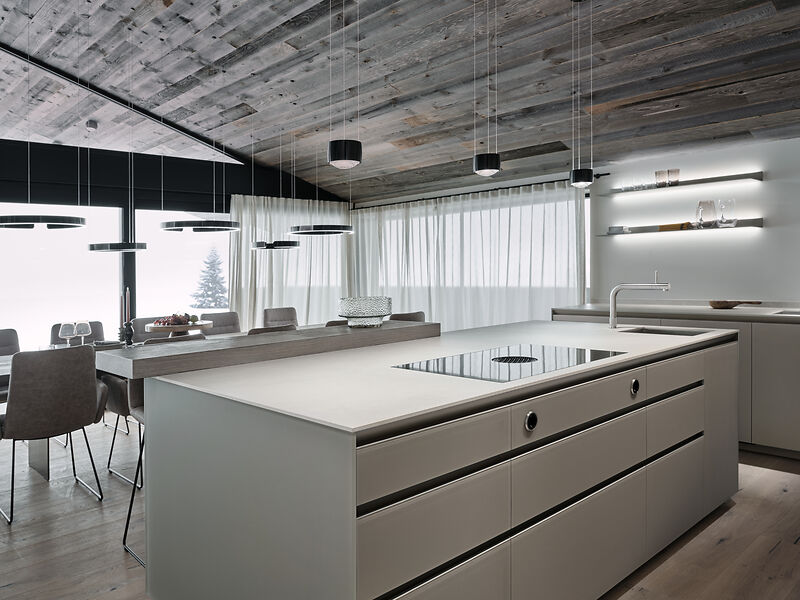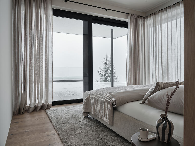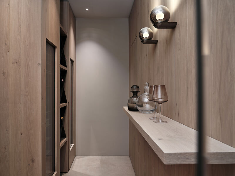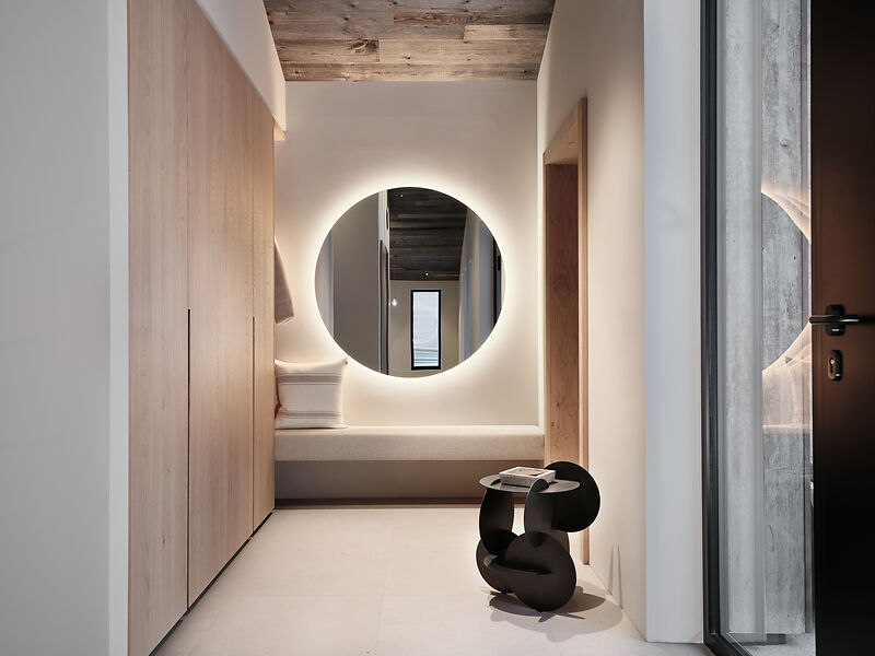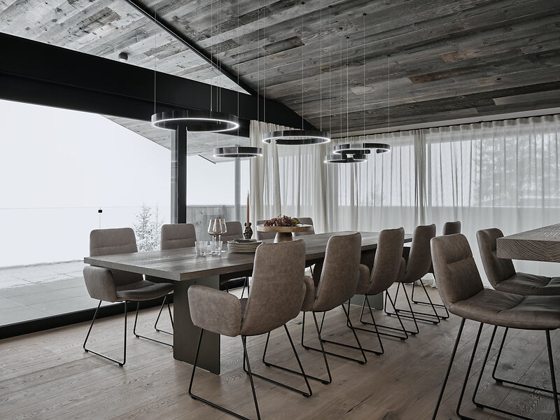Das Chalet beeindruckt durch seine moderne Architektur, die auf edlen regionalen Materialien basiert. Der Infinity-Pool mit atemberaubendem Panoramablick auf die umliegende Bergwelt ist ein besonderes Highlight. Der angrenzende Whirlpool und der elegante Wellnessbereich laden zu entspannten Momenten ein. Zudem verfügt das Chalet über einen großzügigen Weinkeller, der den Rahmen für exklusive Weinabende schafft, sowie eines der modernsten Smart Home Systeme am Markt von der Firma Basalte. Einweiteres Highlight ist das speziell ausgearbeitete Licht-Konzept von Occhio, welches da Chalet in besonderem Glanz erleuchten lässt.